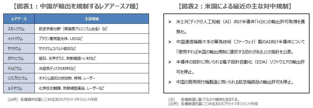 一方、報道によると、米国も対中輸出規制を強めており(図表2)、4月には米エヌビディアの人工知能(AI)向け半導体「H20」の輸出許可取得を義務化したとみられます。5月の合意後も、米国は中国通信機器大手の華為技術(ファーウェイ)製のAI向け半導体について「使用すれば米国の輸出規制に違反する恐れがある」との指針を示し、また、半導体の設計に用いられる電子設計自動化(EDA)ソフトウエアの輸出許可を停止した模様です。