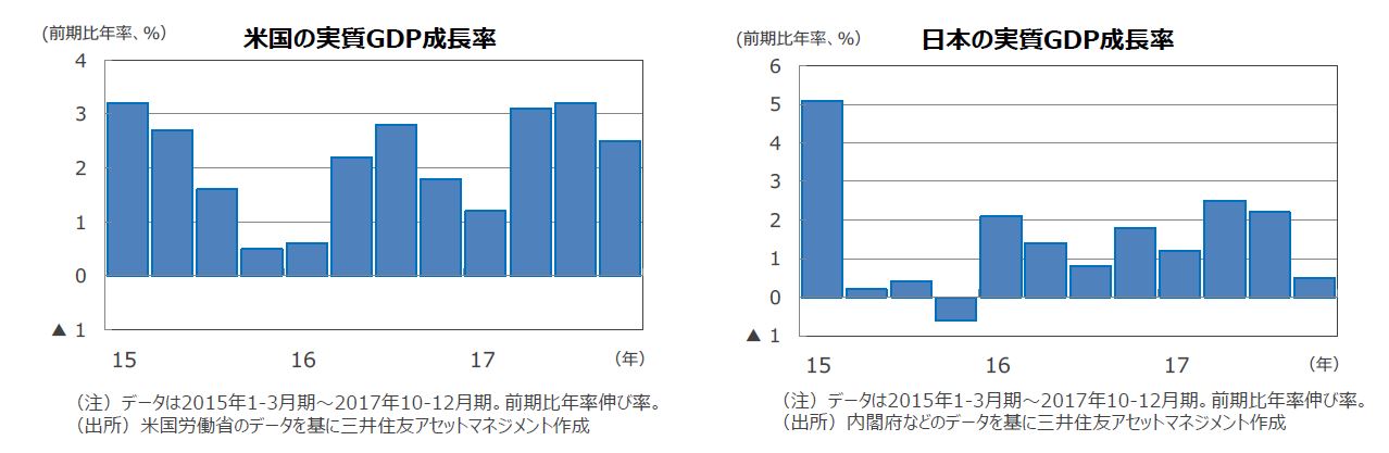 米国は、個人消費と設備投資の二本の柱を軸に、緩やかな成長を維持する見通しです。トランプ大統領の税制改革(減税)の効果も見込まれます。