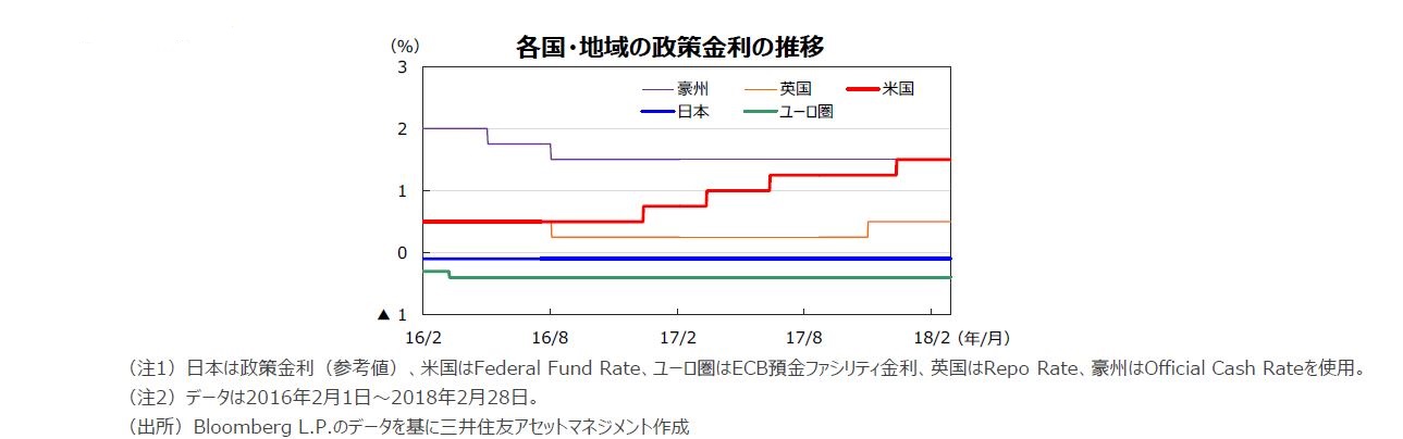 米国の長期金利は、賃金や物価関連指標の上振れから、米連邦準備制度理事会(FRB)の利上げが加速するとの見方が強まり、上昇しました。 欧州の長期金利は、世界的な株価の下落や、選挙を控えたドイツやイタリアでの政治的な不透明感の強まりから、低下しました。 |