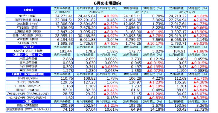 先月のマーケットの振り返り(2018年6月)【マンスリー】