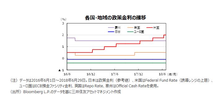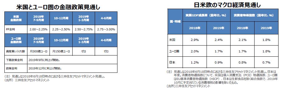 まず、米国の金融政策について、弊社では四半期毎の0.25%の利上げペースがこの先も続くとみています。そして、フェデラルファンド(FF)金利の誘導目標は、2019年6月の米連邦公開市場委員会(FOMC)で、年2.75%~3.00%へ引き上げられ、そこで利上げは終了と予想します。次に、ユーロ圏のECBは予定通り、2018年10月から資産購入額を月300億ユーロから月150億ユーロへ減額し、2018年12月末で購入を打ち切る予定です。利上げについては、下限政策金利(中銀預金金利、現行年▲0.4%)の引き上げを2019年9月に開始。さらに政策金利(主要リファイナンス金利、現行年ゼロ%)の引き上げも2019年12月に着手し、出口戦略を進めるとみています。