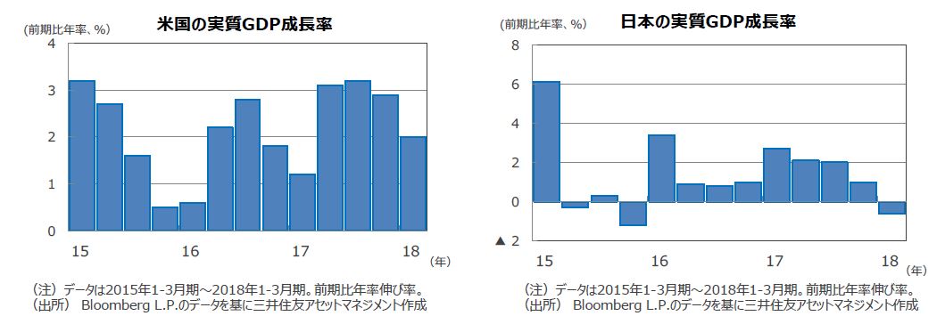 日本は、18年1-3月期の実質GDP成長率が前期比年率▲0.6%と、15年10-12月期以来、9四半期ぶりのマイナス成長となりました。