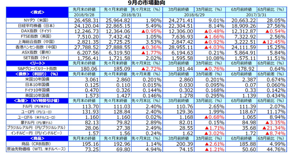 先月のマーケットの振り返り(2018年9月)【マンスリー】