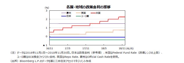 | 債券 | 米国の長期金利は、景気指標の軟化、米株価や原油価格の下落、FRB高官のハト派的な発言を受けた利上げ観測の後退等により低下しました。欧州の長期金利も、英国とEUの離脱交渉を巡る不透明感の強まり等から、低下しました。 |