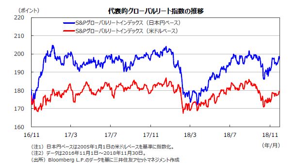 11月のグローバルリート市場は、主要国の長期金利低下を受けて上昇しました。円ベースの月間上昇率は、為替効果がプラスに寄与したため、ドルベースの上昇率を上回りました。