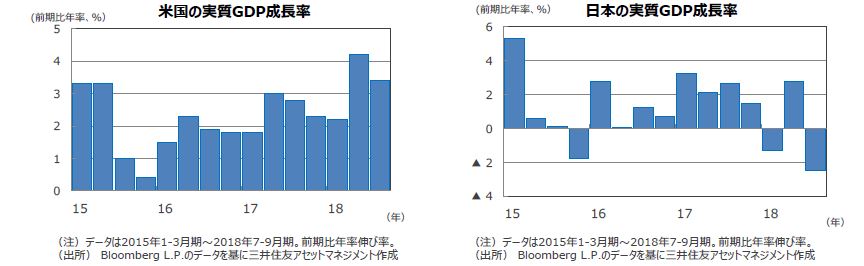 米国は、18年7-9月期の実質GDP成長率が前期比年率+3.4%となり、4-6月期の同+4.2%からは鈍化したものの、高い成長を維持しました。