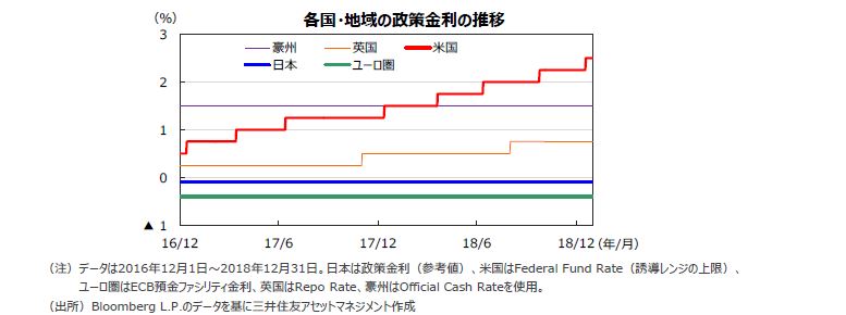 19年については、米国では利上げが継続されるものの、世界経済の先行き不透明感の高まり等から、回数は1回にとどまる見通しです。