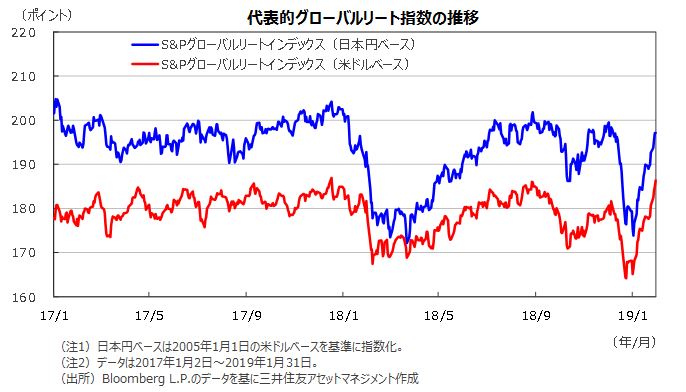 1月のグローバルリート市場は、世界的な株価の上昇を受けて反発しました。円ベースの月間上昇率は、為替効果がマイナスに寄与したため、米ドルベースの上昇率を下回りました。