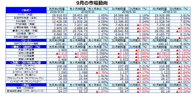 先月のマーケットの振り返り(2019年9月)