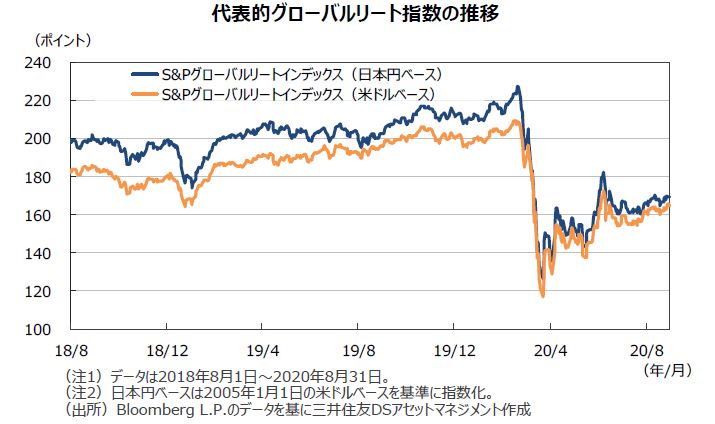 グローバルリート市場は上値の重い推移を想定します。主要国経済は回復基調にありますが、6月以降感染第2波が観測されたことなどから経済の回復スピードは緩やかになると予想されます。但し、感染再拡大には一応の歯止めがかかっており、ワクチン次第では回復期待が高まる可能性もあります。Eコマースの浸透を受けたファッションブランド企業の破綻や店舗閉鎖、都市部賃料の下落がみられるなど、世の中の構造変化が今後も顕在化していくと予想されます。リテールやホテルセクターなどは新型コロナ感染拡大や”ニューノーマル”の定着に悪影響を受けるとみられる一方、データセンターや、通信、物流施設セクターなどは安定的な業績を達成しており、サブセクター間でのバリュエーション格差は継続するとみられます。当面、低金利環境が継続するとみられるため、インカム商品へのニーズが再度注目されると予想されますが、景気回復期待の強まりやインフレは長期金利の上昇要因であり、リートには向かい風となるため注意が必要です。