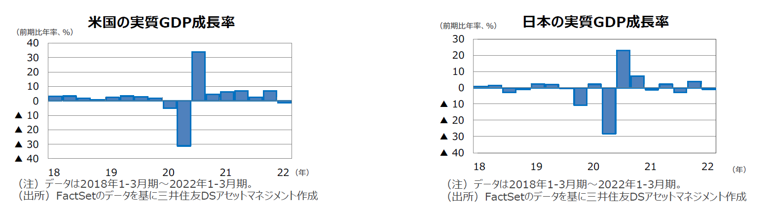 米国の2022年1-3月期の実質GDP成長率は前期比年率▲1.5%となりました。内需は底堅いものの、輸入の急拡大がマイナスに寄与しました。