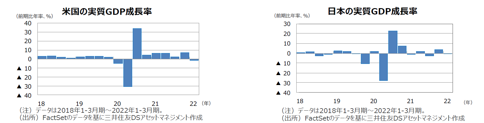 米国の2022年1-3月期の実質GDP成長率は前期比年率▲1.6%となりました。内需は底堅いものの、輸入の急拡大がマイナスに寄与しました。
