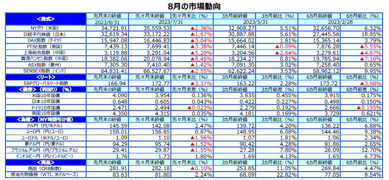 ホームマーケット週次・月次市場情報先月のマーケットの振り返り(2023年8月)