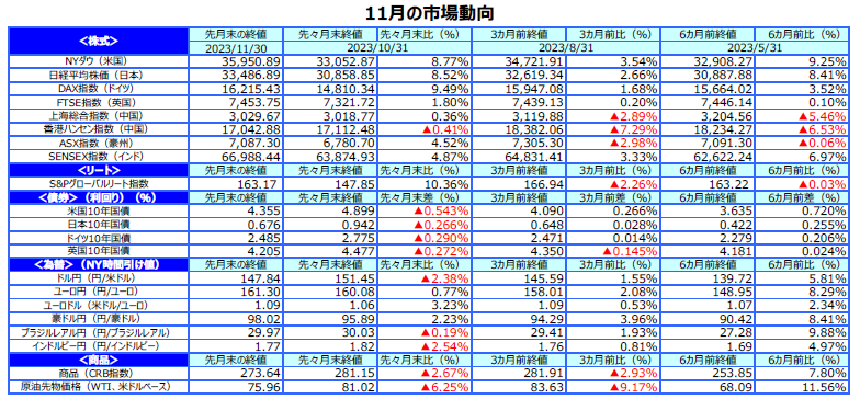 ホームマーケット週次・月次市場情報先月のマーケットの振り返り(2023年11月)