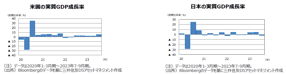 ●米国は、これまでの大幅な利上げに伴う景気抑制効果や、強かった7-9月期の反動から、10-12月以降は景気が減速するとみられます。ただし、雇用が比較的安定しており、個人消費が底堅いことや、企業収益が回復傾向にあることから、景気は24年にかけ緩やかな減速となる見通しです。