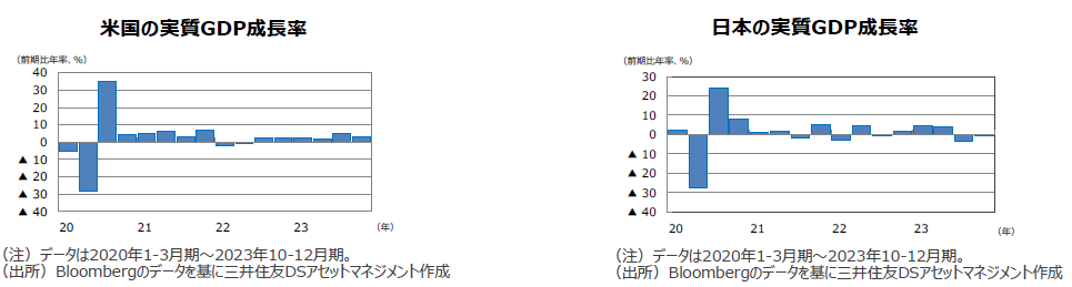 ●日本は、10-12月期実質GDP成長率が2期連続でマイナスとなり、1-3月期も自動車大手の生産中止の影響から減速が見込まれます。ただし、インフレの鈍化と賃金の上昇、経済対策の効果、インバウンド消費の増加、堅調な企業収益を背景に、緩やかな景気回復のパスに復調する見通しです。