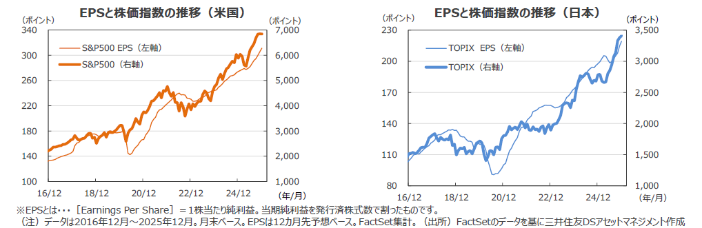 ●米ファクトセット(FactSet)によれば、日米の企業業績の見通しは堅調です。12月末の米S&P500種指数の予想1株当たり純利益(EPS)は前年同月比+13.5%、TOPIXの予想EPSは同+10.9%となりました。