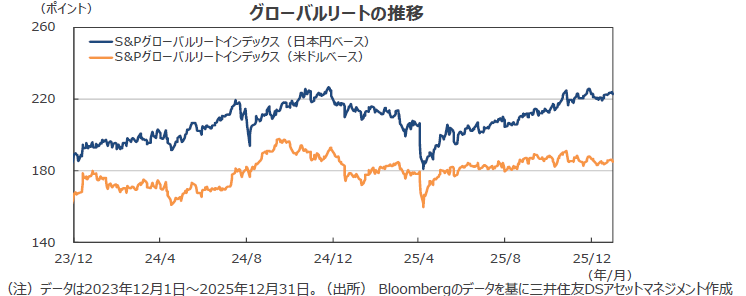 ●日本では、良好なファンダメンタルズを背景に緩やかな回復が続くと予想します。不動産投資はインフレヘッジ手段として再評価が進みそうです。ただし、26年初めは、成長投資のために増資を行う企業が増加しているうえに、利上げの影響も懸念されるため、現状水準でもみ合う展開を予想します。