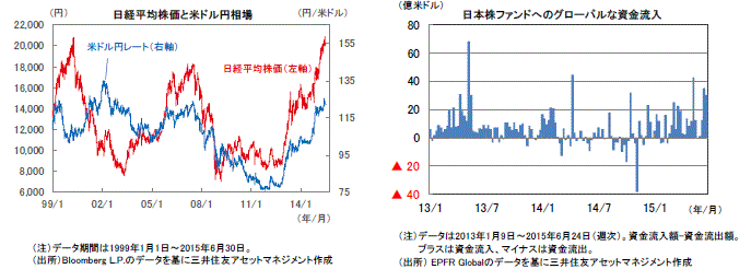ウクライナの新大統領は、親EU派ながらも対ロ関係の正常化を掲げており、欧米とロシアの対立が先鋭化する可能性が低下しました(ロシア株、通貨は急反発)。こうしたなか、1-3月期の米国の主要企業の決算が事前予想を大幅に上回ったことを背景に、米国の主要な株価指数は最高値を更新しました。また、4月以降は一旦停滞していた新興国向けの資金の流れも回復し、新興国の株価も上昇しました。