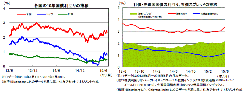 米国の景気回復や将来の利上げ観測が強まるにつれ、米国債などの利回りは緩やかな上昇基調に転じそうです。ただし、FRBはゼロ金利政策を長期にわたり維持すると見られ、利回りの上昇は緩やかに留まると思われます。米国など主要国の社債市場は、底堅い企業業績や慎重な財務運営、旺盛な社債の需要などを背景に、利回りは低位で安定しそうです。その結果、社債スプレッドも安定的な推移を続けると思われます。