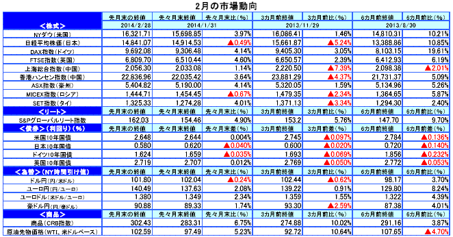 円安ドル高が進行して約6年ぶりの水準となり、伸び悩んでいた日本株は上昇しました。 米国の利上げ前倒し観測に加え、地政学リスクの後退などから、米欧の国債利回りは上昇しました。 |