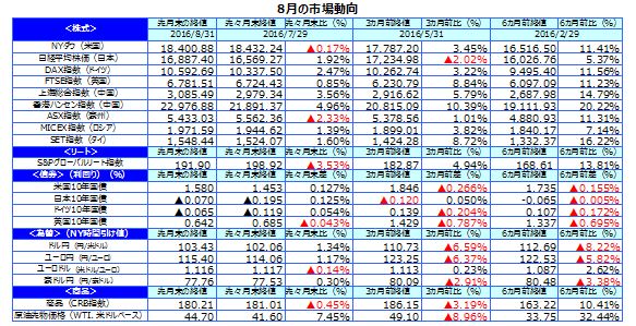 先月のマーケットの振り返り(2016年8月)【マンスリー】