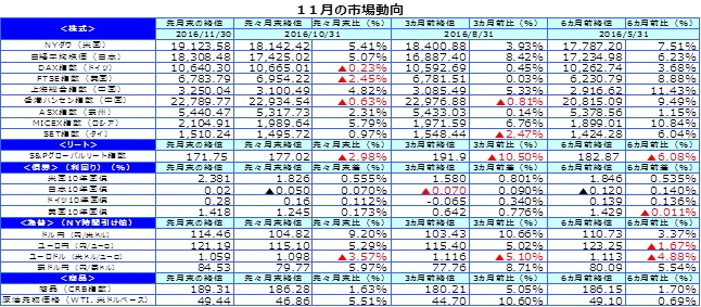 先月のマーケットの振り返り(2016年11月)【マンスリー】