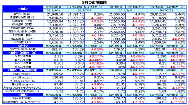 先月のマーケットの振り返り(2017年8月)【マンスリー】