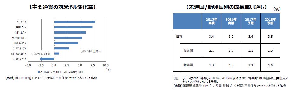 年初から主要新興国の通貨は対米ドルで総じて堅調に推移しています。また、MSCI新興国株価指数(現地通貨建てのトータル・リターン指数)について、2016年12月30日から2017年8月30日までの騰落率は、22.9%となっています。そして、バンクオブアメリカ・メリルリンチ新興国ソブリン債券指数(現地通貨建てのトータル・リターン指数)の同期間における騰落率は3.1%でした。このように、為替、株式、債券の各市場をみる限り、米利上げ局面においても新興国市場には資金が流入し続けていると推測されます。