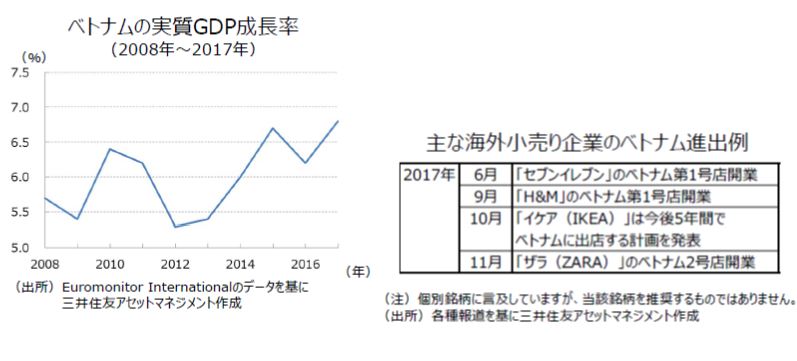 ベトナム政府が発表した2017年実質GDP成⻑率は前年⽐+6.8%となり、政府⽬標の+6.7%を上回ったうえ、2008