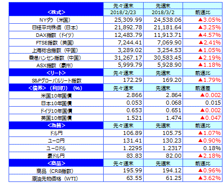 先週のマーケットの振り返り(2018/2/26-3/2)【ウィークリー】