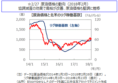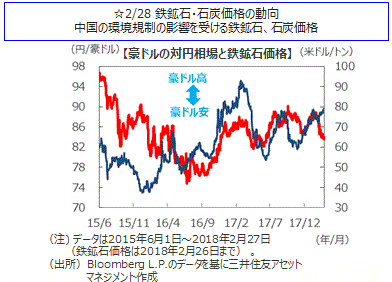 主要国の10年国債利回りは小幅な動きとなりました。米国の10年国債利回りは、パウエルFRB議長の議会証言がタカ派的であったことを受けて、2.9%台まで上昇しました。その後は米国が鉄鋼、アルミへの関税引き上げを行うと表明して株式が下落し、リスク回避の買いが入り金利は低下しました。結局週間ではほぼ横ばいとなりました。英国の10年国債の利回りはEU離脱交渉への不透明感などから週間では0.047%低下しました。