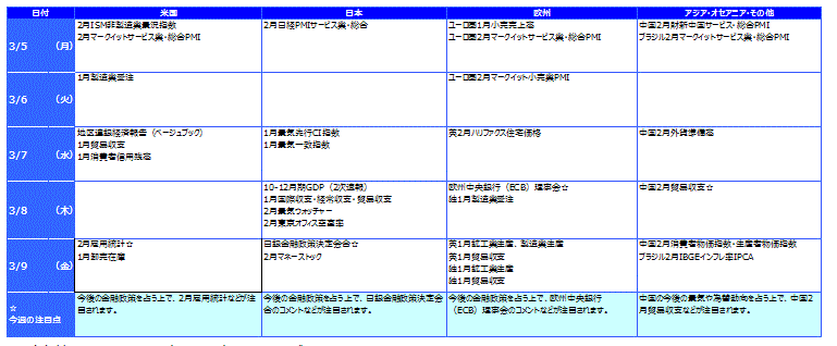 円は主要国通貨に対して上昇しました。対ドルでは米国が鉄鋼、アルミの関税を引き上げると表明してことや、黒田日銀総裁が出口戦略の時期を2019年度ごろと示唆したことなどから、週間では1.07%の円高となりました。対ユーロでは、週間では0.90%の円高となりました。