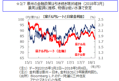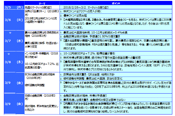 主要国の10年国債利回りは小幅な動きとなりました。米国の10年国債利回りは、北朝鮮リスクの後退や米2月雇用統計の非農業雇用者数の上振れなどを受けて、金利は週間では0.030%上昇しました。ドイツの10年国債利回りはほぼ横ばいとなりました。
