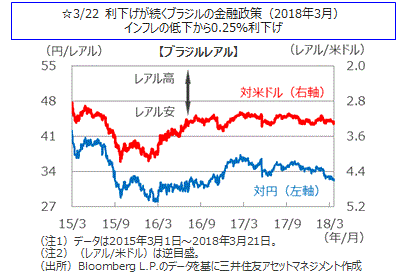 主要国の10年国債利回りは英国を除いて低下しました。米国の10年国債利回りは、トランプ政権が中国に対して「通商法301条」を発動すると表明し、貿易摩擦が高まるとの懸念や株安を受けたリスク回避の債券買いなどから週間では金利は0.031%低下しました。ドイツ、日本の10年国債利回りはともに低下、英国は上昇しました。