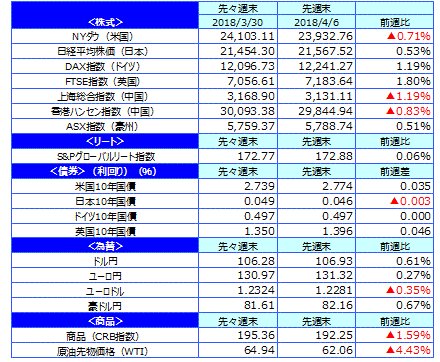 先週のマーケットの振り返り(2018/4/2-4/6)【ウィークリー】