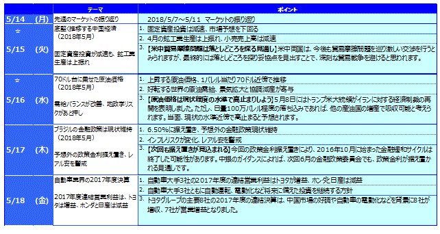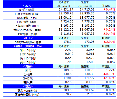 先週のマーケットの振り返り(2018/5/14-5/18)【ウィークリー】