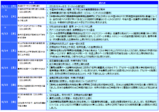 先週のマーケットの振り返り(2018/6/11-6/15)【ウィークリー】