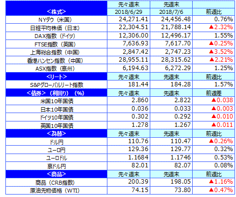 先週のマーケットの振り返り(2018/7/2-7/6)【ウィークリー】