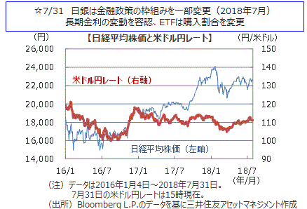 米国の10年国債利回りは、日銀が金融緩和政策を修正するとの観測報道を受けて上昇する場面もありましたが、貿易摩擦激化への警戒感などから低下し、週間ではほぼ横ばいとなりました。英国の10年国債利回りは上昇しました。ドイツと日本の10年国債利回りは、ほぼ横ばいとなりました。