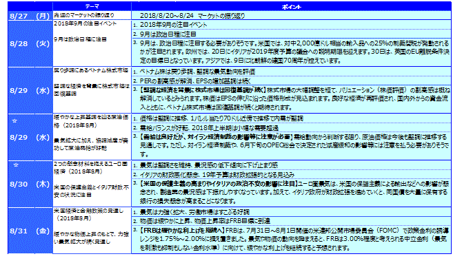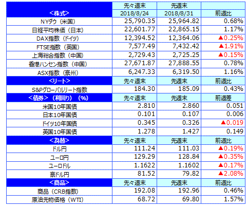 先週のマーケットの振り返り(2018/8/27-8/31)【ウィークリー】