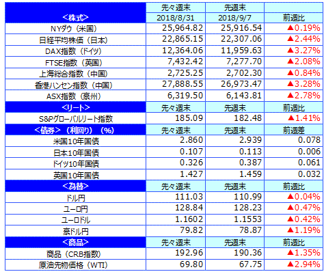 先週のマーケットの振り返り(2018/9/3-9/7)【ウィークリー】