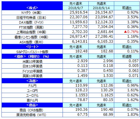 先週のマーケットの振り返り(2018/9/10-9/14)【ウィークリー】