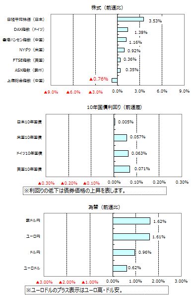 米国の10年国債利回りは、8月鉱工業生産指数や9月消費者態度指数などの強い内容を受けて、週間では0.057%上昇しました。ドイツと英国10年国債利回りも上昇、日本の10年国債利回りはほぼ横ばいでした。