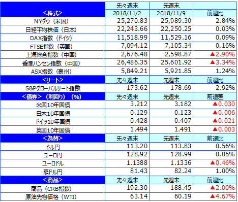 先週のマーケットの振り返り(2018/11/5-11/9)【ウィークリー】