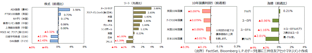 米国の10年国債利回りは、ユーロ圏の成長率見通し引き下げや米中通商摩擦への懸念が高まったことなどを受けて、週間では0.050%低下しました。ドイツ、英国、日本の10年国債利回りも低下しました。
