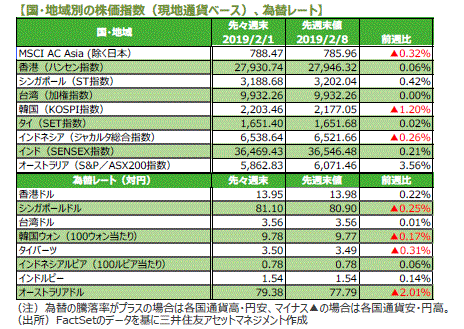 先週のマーケットの振り返り(2019/2/4-2/8)
