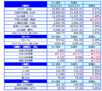 先週のマーケットの振り返り(2019/2/18-2/22)