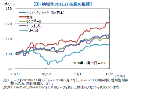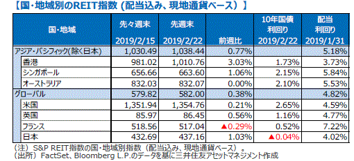 グローバル・リートは欧米での長期金利低下などを受けて、小幅に上昇しました。