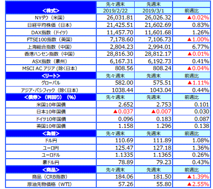 先週のマーケットの振り返り(2019/2/25-3/1)